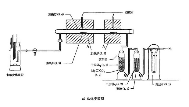 在105ºC的加熱爐內(nèi),在干燥的氮氣氣氛中加熱預(yù)干燥試樣,使吸濕水釋放出來。繼續(xù)在另一950ºC的爐內(nèi)加熱,用乙二醇-甲醇混合液收集釋放的化合水。
