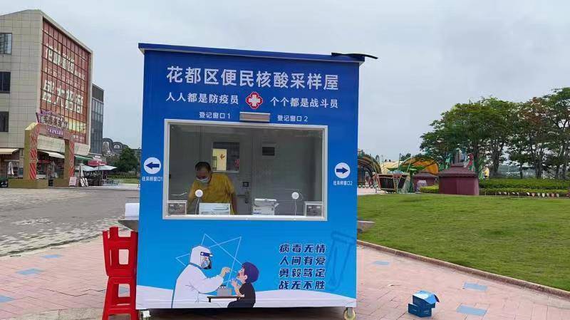 5月23日,花都區(qū)添置第一批5個(gè)專用核酸采樣屋,分別放置在來(lái)又來(lái)商場(chǎng)、新世紀(jì)廣場(chǎng)、融創(chuàng)樂(lè)園、雅樂(lè)城廣場(chǎng)、花東市場(chǎng),當(dāng)天下午3時(shí)正式投入使用,受到市民群眾的熱烈歡迎,這也是 廣州市第一批專用核酸采樣亭。
