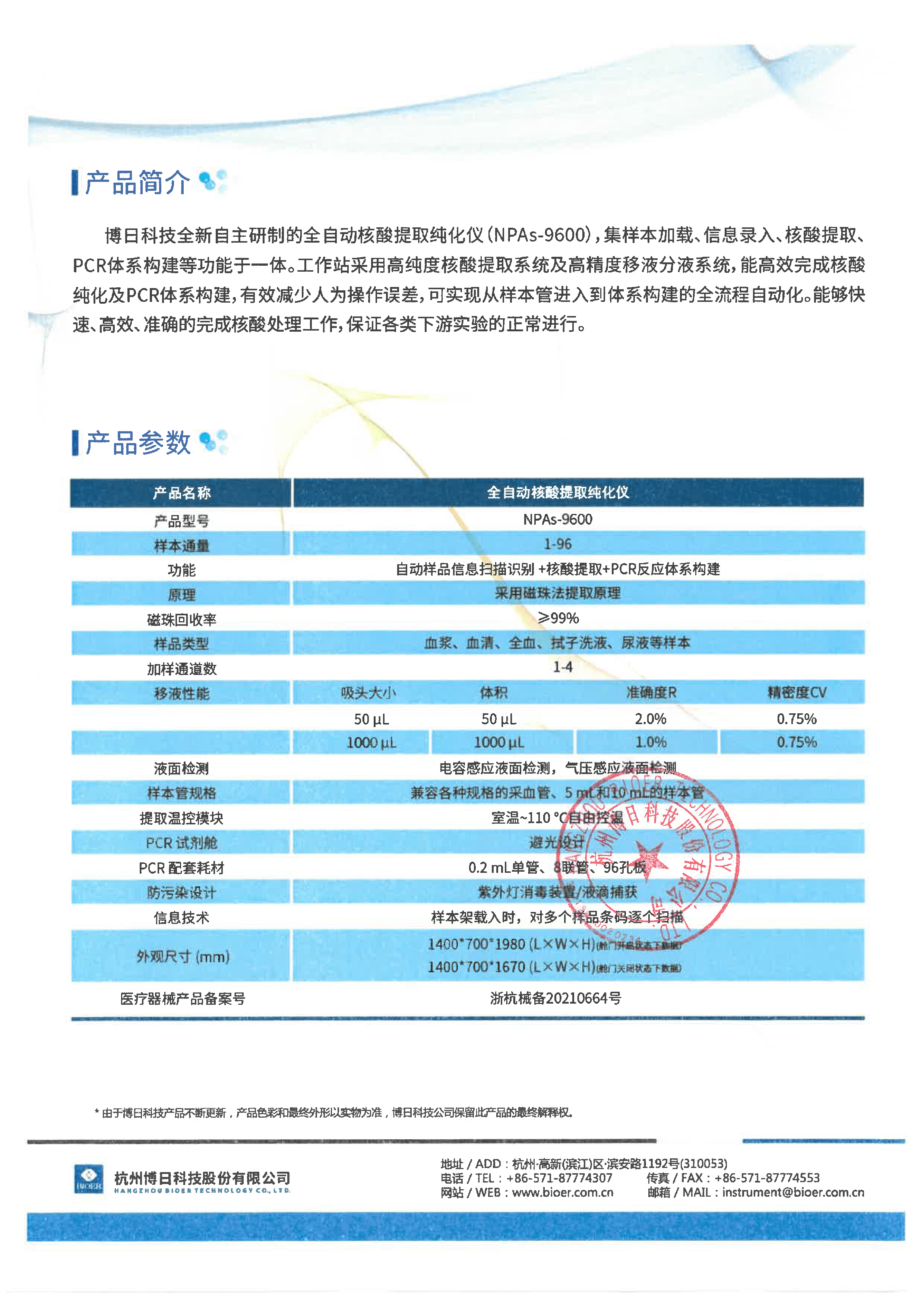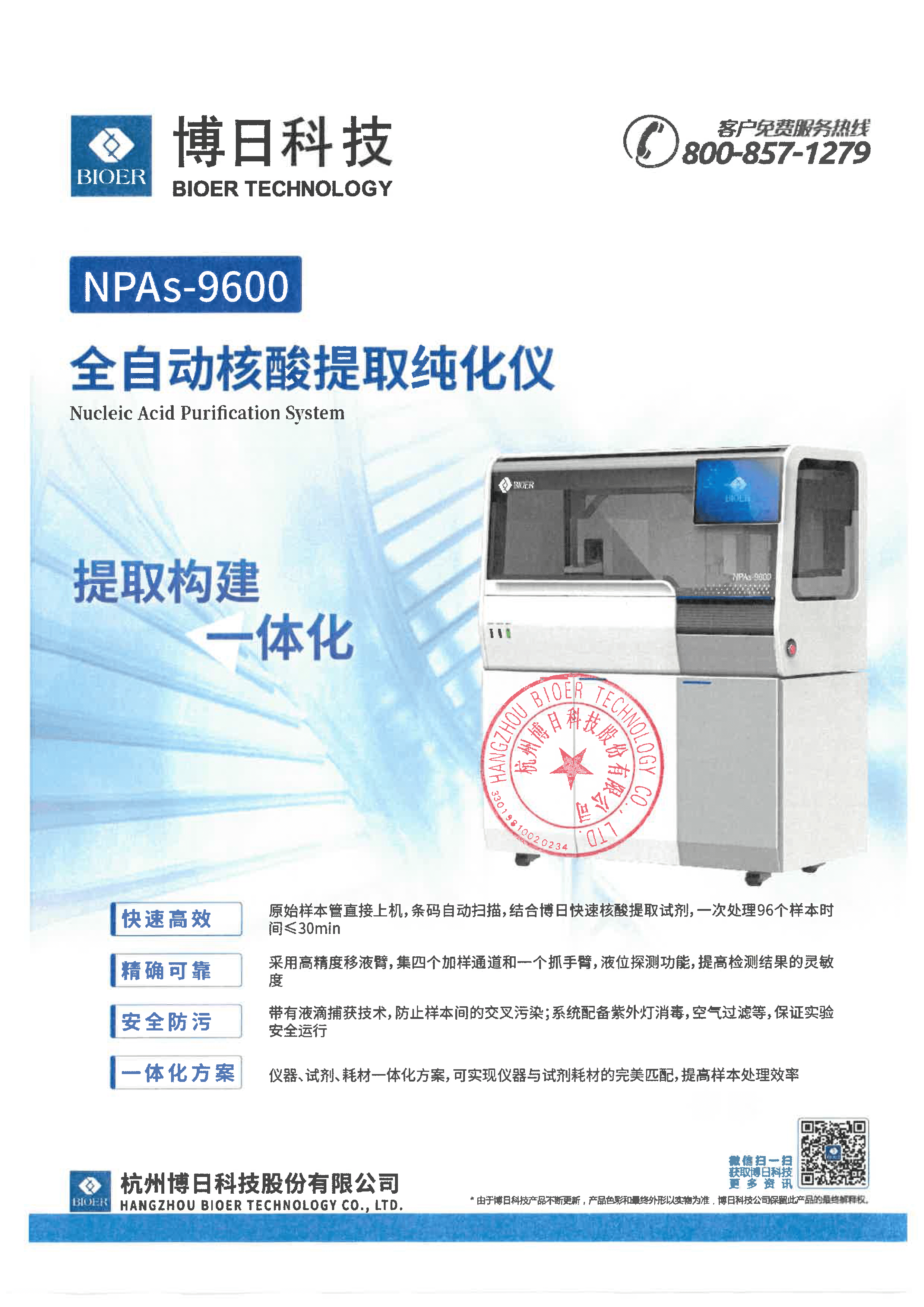 杭州博日 全自動核酸提取純化儀NPAS-9600